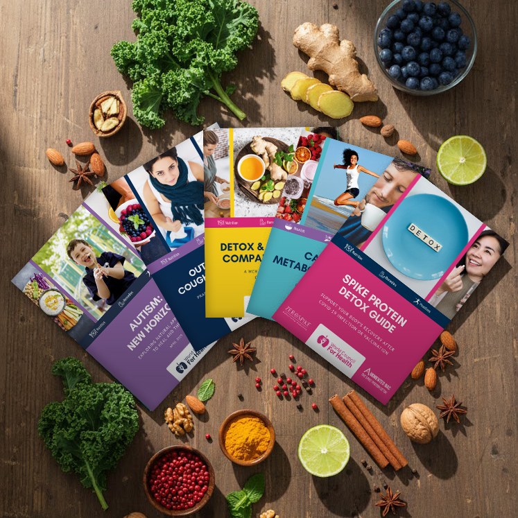 Introducing our Health Guides: Detox and Wellbeing Companion Guide , Cancer & Metabolic Diseases, Outsmarting Coughs, Colds and Flu, Autism New Horizons and Spike Protein Detox Guide.